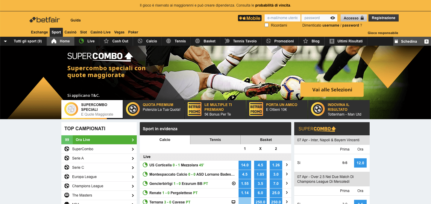 Utilizzando il Betting Exchange sarà, inoltre, possibile fare Cash Out, ritirando nell’immediato la cifra vinta mentre la partita è ancora in corso. Per quanto riguarda il Betfair calcio, quest’ultima è sicuramente la categoria di gioco più curata di tutta la piattaforma di gioco.